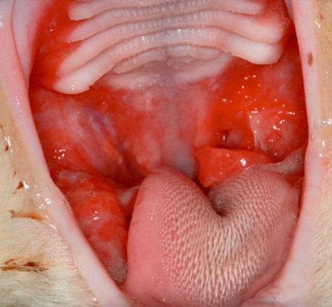 Feline chronic gingivostomatitis is a severely painful, debilitating oral inflammatory disease that affects cats worldwide. It is characterized by intense, diffuse inflammation of the gingiva and oral mucosa, extending far beyond what you’d expect from routine dental disease. Lesions can take an ulcerative or proliferative form, and many cats have both simultaneously.