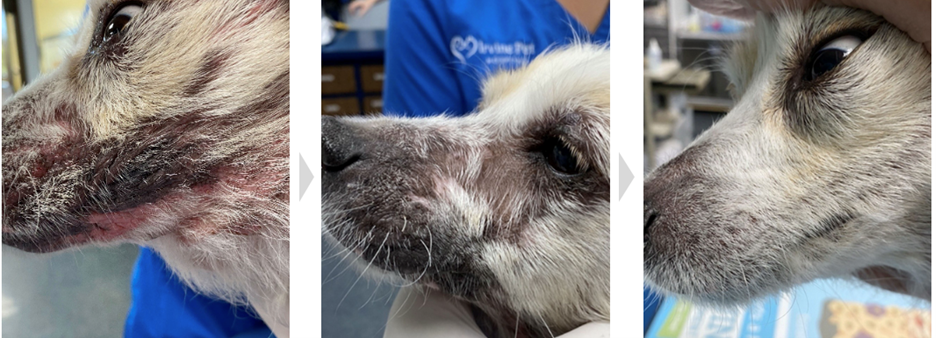 Standard therapies for CAD include corticosteroids, antihistamines, cyclosporine (Atopica®), JAK inhibitors (oclacitinib/Apoquel®, ilunocitinib/Zenrelia™), monoclonal antibodies against IL-31 (lokivetmab/Cytopoint®) , and patient specific immunotherapy.13,14 Many of these standard therapies target a single pathway and do not resolve the underlying disease pathology, resulting in 20-40% of dogs having incomplete resolution of signs. 13,14