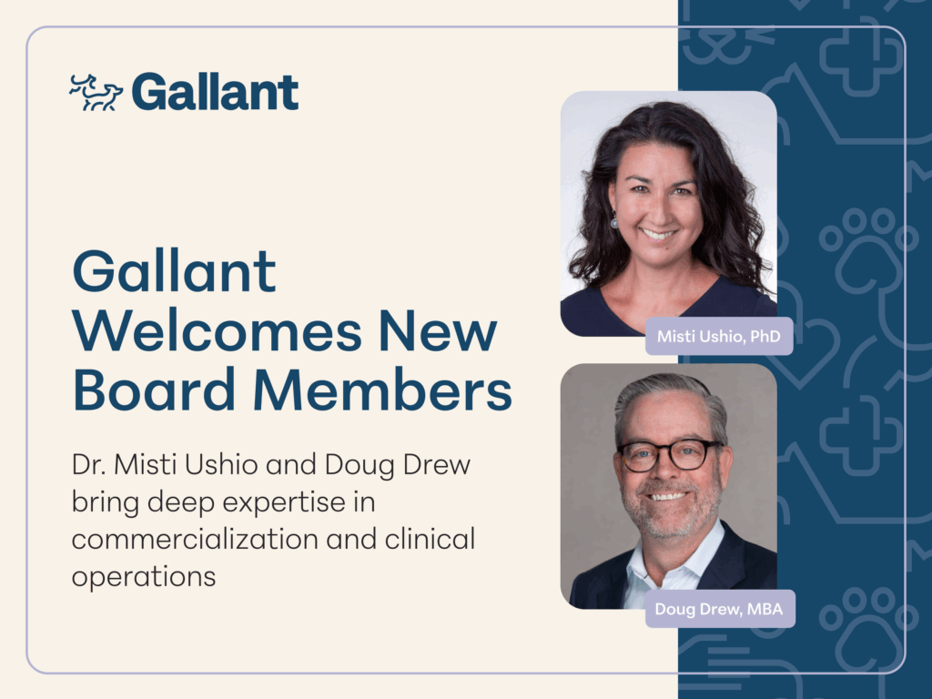 As Gallant prepares to deliver potentially the first FDA-approved, ready-to-use stem cell therapy for pets, new board members bring deep experience in commercialization and clinical operations